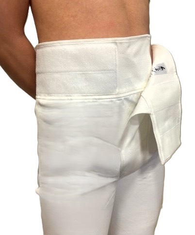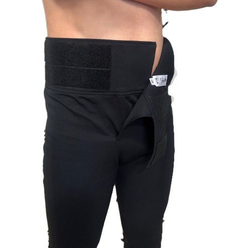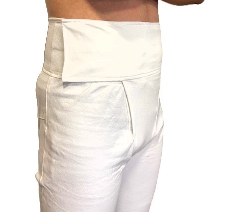 身体にフィットするピチッとしたシルエットはそのままに、ウエスト部分をマジックテープ仕様に。